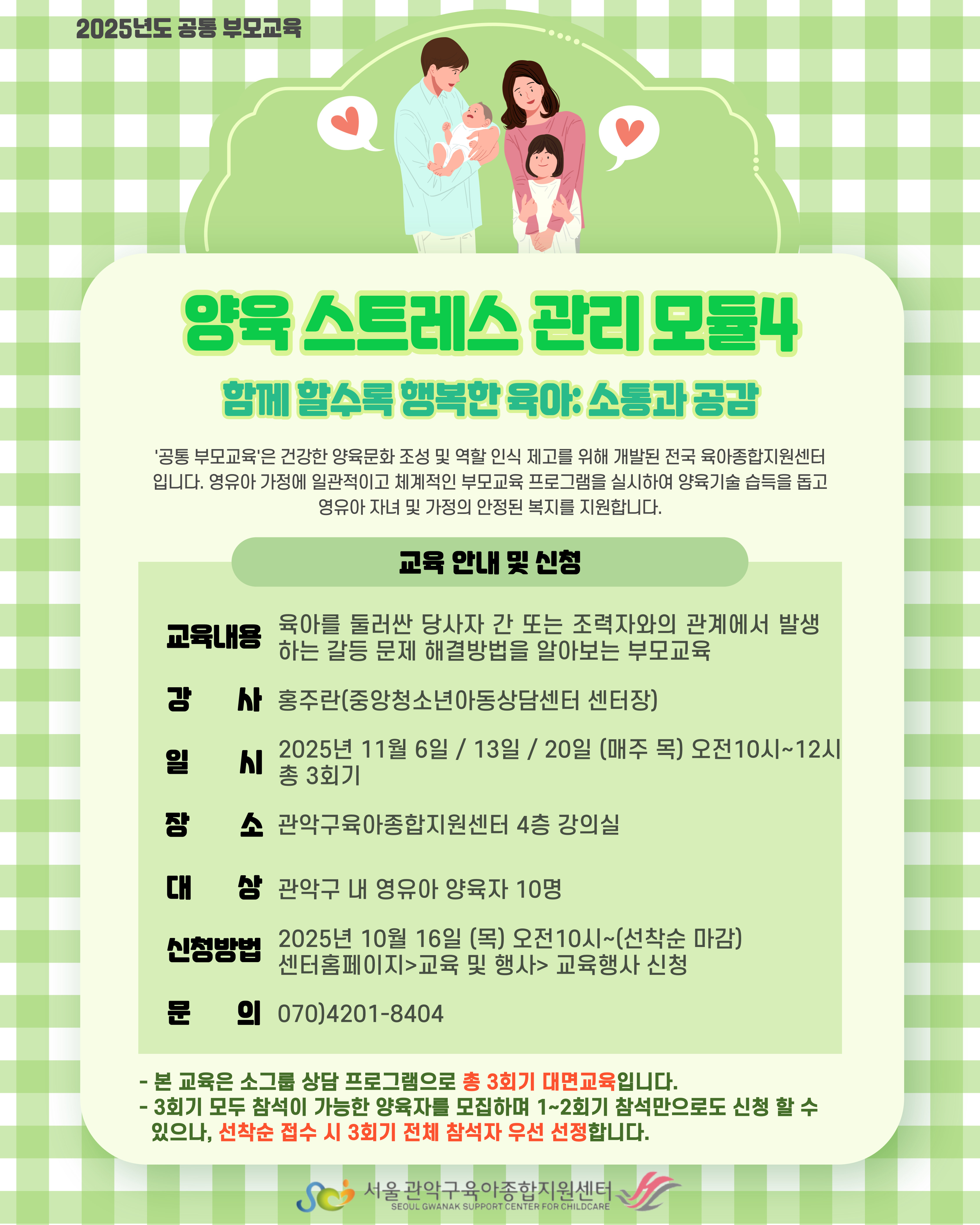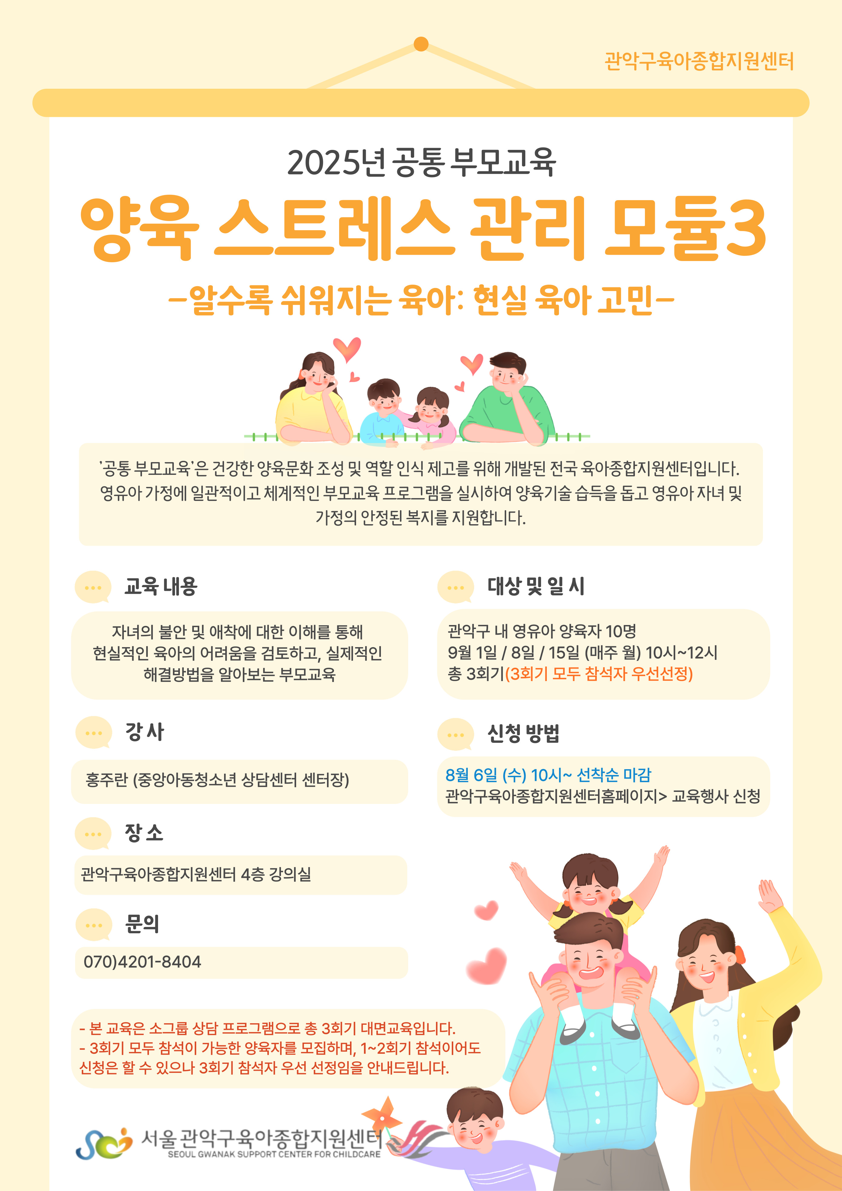 <![CDATA[집단상담프로그램) '2025년 함께 할수록 행복한 육아 : 소통과 공감'_관악구]]> 안녕하세요?