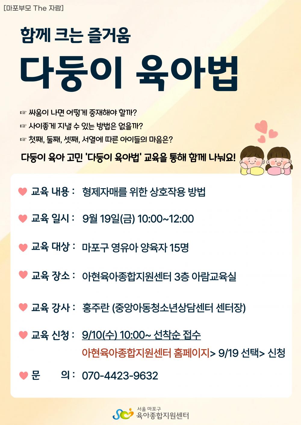 <![CDATA[부모교육) '2025년 양육자 부모교육_ 다둥이 육아방법_마포구육아종합지원센터]]> 안녕하세요?