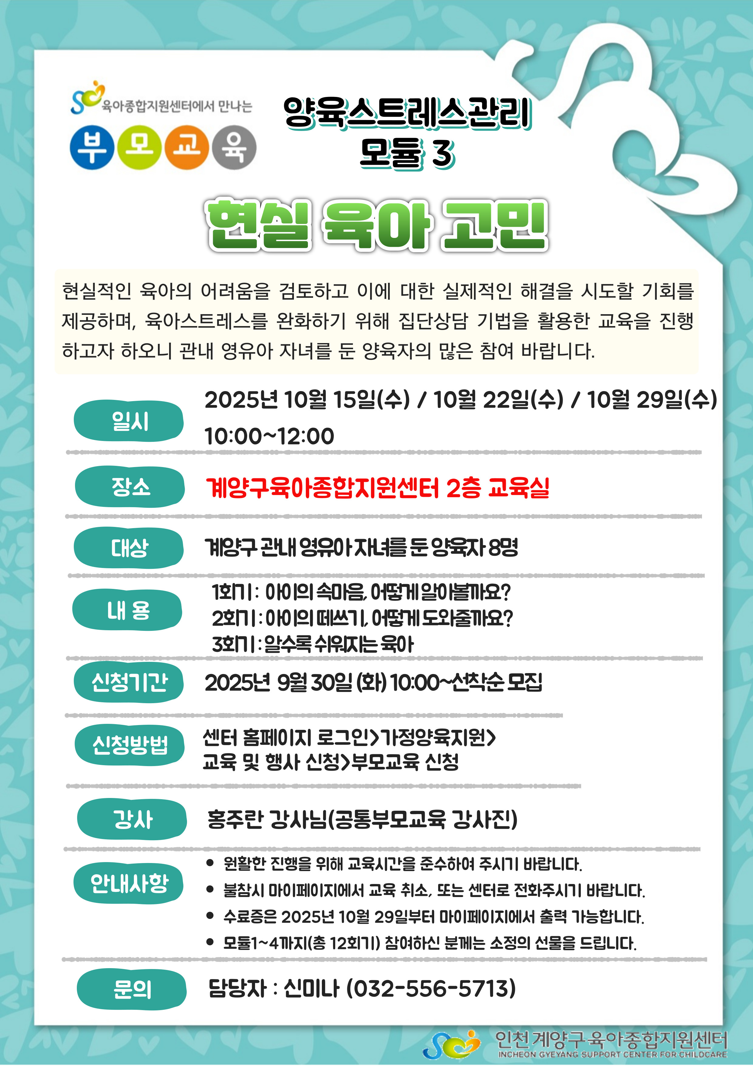 <![CDATA[집단상담프로그램) '2025년 알수록 쉬워지는 육아: 현실 육아고민' 집단상담_계양구]]> 안녕하세요?