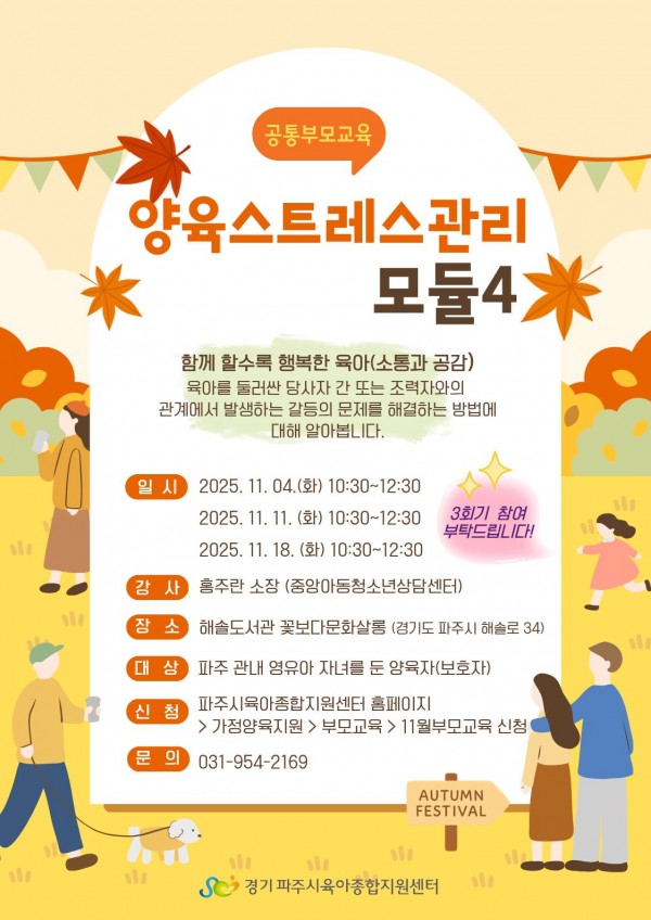 <![CDATA[집단상담프로그램) '2025년 함께 할수록 행복한 육아 : 소통과 공감'_파주시]]> 안녕하세요?